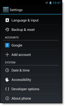 - Touch the Settings > Add account > Google to add your Google Apps account.
